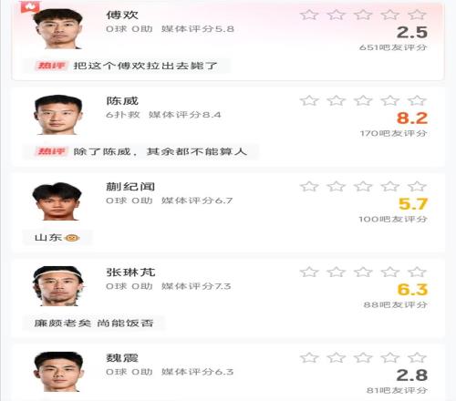 最后就是李圣龙,作为本场比赛的单箭头,他在出战半场的情况下,李圣龙不仅没有一脚射门,而且丢失球权数也是达到了6次,这也导致李圣龙在赛后评分时仅仅获得3.1分,而在赛后,也是有球迷向李圣龙提出了质疑:不靠外援你倒是进球啊!