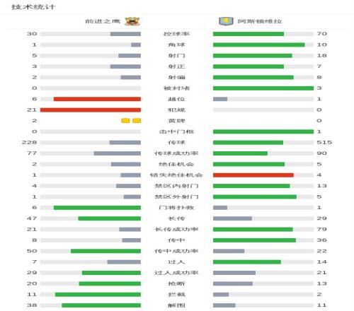 第42分钟,特维特开出任意球,苏雷折射破门,前进之鹰1-1维拉